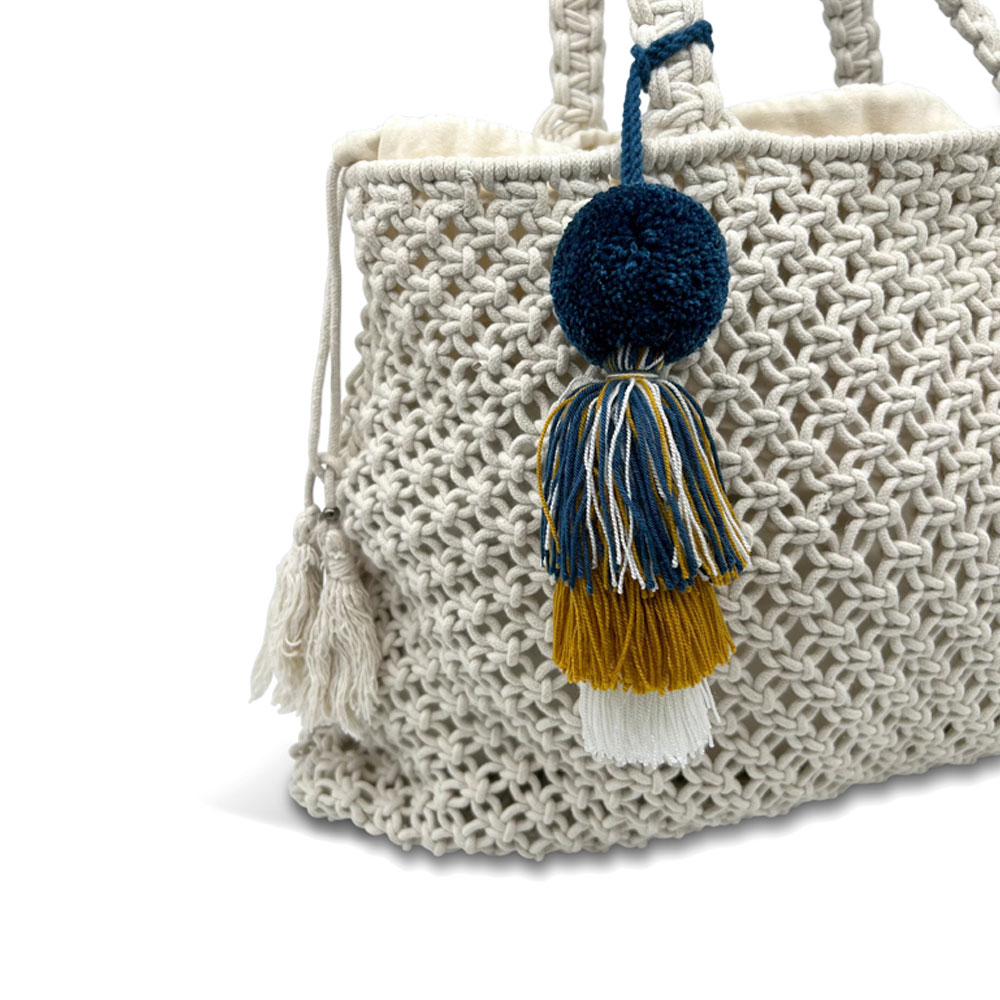 Large Crochet Cotton Handwoven Bag Pom Pom