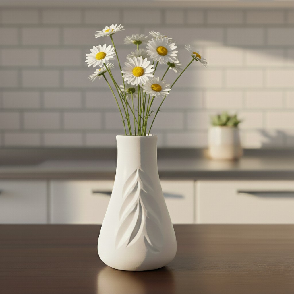 Design: Curved shape vase with leaf texture
