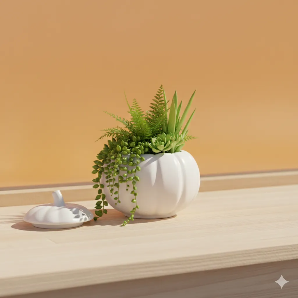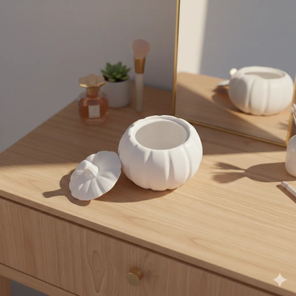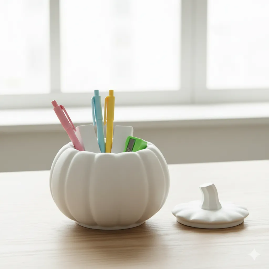 Unique pumpkin design • Comes with lid for safe storage • Minimal & aesthetic look • Lightweight & durable • Perfect for modern home decor