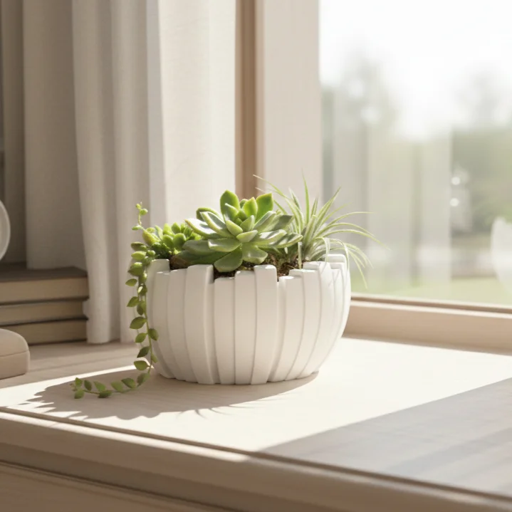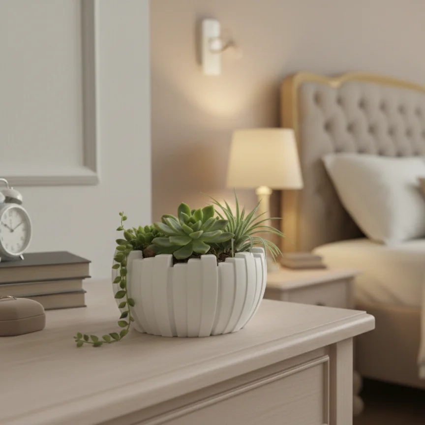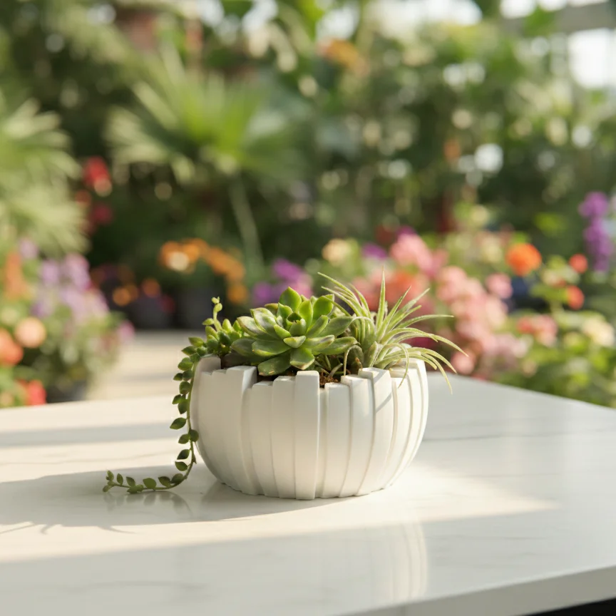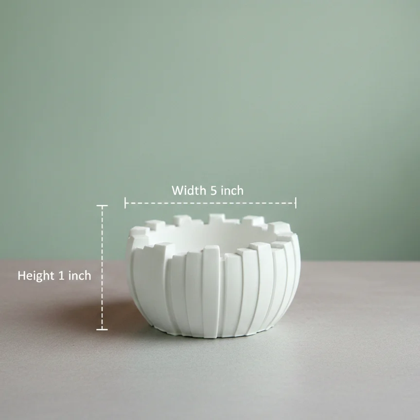 একটি মিনিমালিস্ট ৫-ইঞ্চি ডেকোরেটিভ প্ল্যানটার যা ঘরের সাজসজ্জার জন্য পারফেক্ট। প্রিমিয়াম ম্যাট হোয়াইট জিপসাম দিয়ে তৈরি এই শ্যালো ডিজাইনটি ছোট সাকুলেন্ট প্ল্যান্ট, জুয়েলারি, ঘড়ি বা ছোট ডেকোর আইটেম রাখার জন্য আদর্শ। এর সিম্পল ও এলিগ্যান্ট লুক যেকোনো ডেস্ক, নাইটস্ট্যান্ড বা কফি টেবিলে আধুনিক নর্ডিক স্টাইল যোগ করে।